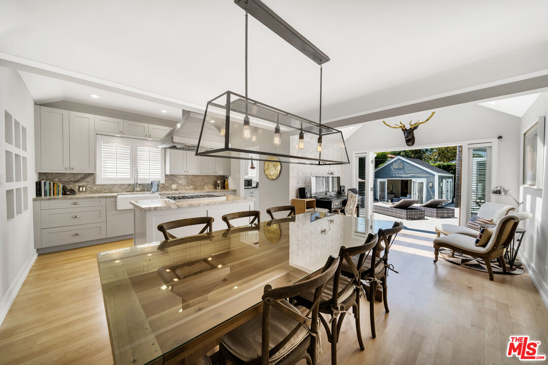A stunning compound situated on a quiet cul-de-sac street in one of the most coveted areas of West Hollywood. Private and gated, with exquisite finishes and attention to detail throughout, rarely does a house of this pedigree become available. Upon entering, natural light floods the open plan kitchen and living area. A fully appointed kitchen with marble countertops and high-end appliances compliments the dining area and office nook. The master suite with exposed beam ceilings opens out to the pool deck, perfect for outdoor dining and entertaining. Lushly landscaped, private, and expansive, the crown jewel to this property is the backyard. Evolving into a serene oasis as the days unfold with sunlight from dawn to dusk. A glistening oversized pool sits alongside the guest house, complete with a bedroom-living area, kitchenette, and bathroom. All of this, moments from the high-end boutiques and restaurants that Melrose Avenue has to offer.